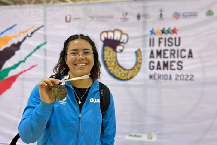 María Ximena Fonseca Arriola, estudiante de la Licenciatura en Comercio Internacional de la BUAP, ganó medalla de oro para México en levantamiento de pesas, durante la segunda edición de los FISU America Games 2022, los cuales se están llevando a cabo del 14 al 26 de octubre, en Mérida, Yucatán.