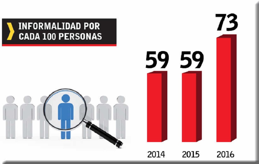 Es decir, en la entidad, 73 de cada 100 personas no cuentan con prestaciones y seguridad social en sus respectivos lugares de trabajo, cuando en 2014 eran 59 de cada 100. En 2015, la tasa de empelados en la informalidad era del 59.91 por ciento.