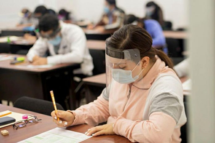 El inmueble fue previamente desinfectado y en grupos de 15 por cada aula los estudiantes hicieron la prueba EGEL-MEDI del Ceneval, cuyos resultados serán enviados vía correo electrónico.