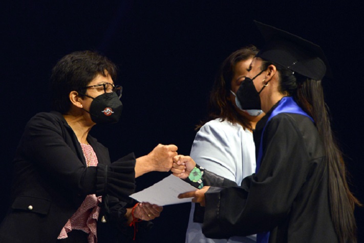 “Van bien preparados, siéntanse orgullosos de sus logros, son una generación especial que sobrevivió a la pandemia y concluyó sus estudios. Estoy segura de que tienen la claridad de lo que quieren hacer y lo van a conseguir. Uno se forja sueños y metas, a veces no los logramos a la primera y tenemos que hacer una pausa, pero nunca los olvidamos…estoy segura de que los alcanzarán”, expresó en el auditorio del Complejo Cultural Universitario, donde tuvo lugar la ceremonia de graduación de la generación 2016-2021 de las citadas cuatro licenciaturas.