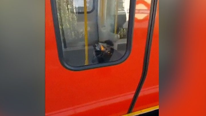 Las imágenes en el lugar muestran un balde blanco incendiado, pero no parece haber mayores daños dentro del tren.