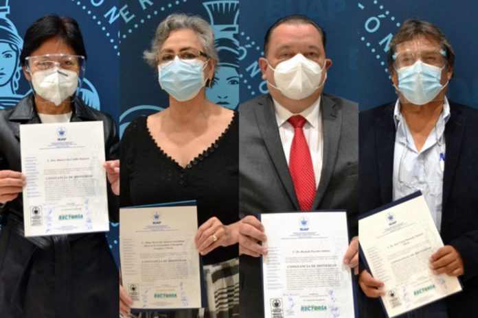 Con apego a la normativa institucional, la Comisión de Auscultación del Honorable Consejo Universitario entregó constancias de idoneidad como candidatos y candidatas a la Rectoría de la BUAP, periodo 2021-2025, a María Lilia Cedillo Ramírez, María del Socorro Guadalupe Alicia de la Inmaculada Concepción Grajales y Porras, Ricardo Paredes Solorio y José Víctor Rosendo Tamariz Flores.
