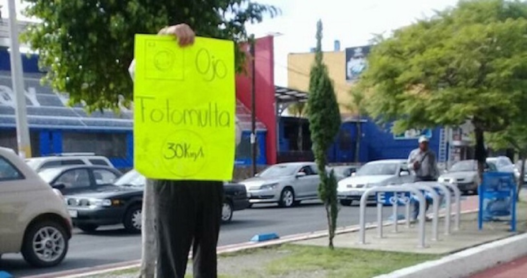 Una nueva cámara de fotomulta fue colocada desde la mañana de este miércoles 16 de agosto en la calle 31 oriente y 14 sur a la altura de Valle de Los Ángeles, en Puebla; sin embargo, un vecino de la zona decidió poner sobre aviso a los automovilistas colocándose un cartel en el pecho con la advertencia.