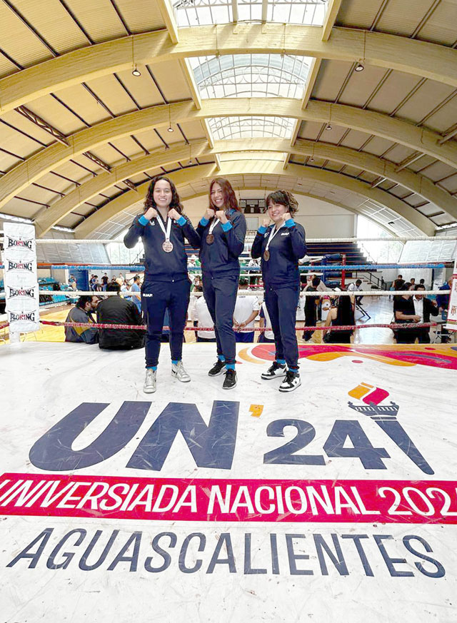 En el deporte del boxeo, Carlos Uriel García Velázquez, de Ingeniería en Tecnologías de la Información, se colgó la medalla de plata; mientras que las estudiantes Ashley Giovanna Paniagua Rosas, de la Licenciatura de Física Aplicada, Alexa Raynal Cobo, de Ingeniería en Ciencias de la Computación, y Montserrat Coronel Sarabia, de la Licenciatura en Actuaría, ganaron, cada una, medalla de bronce.
