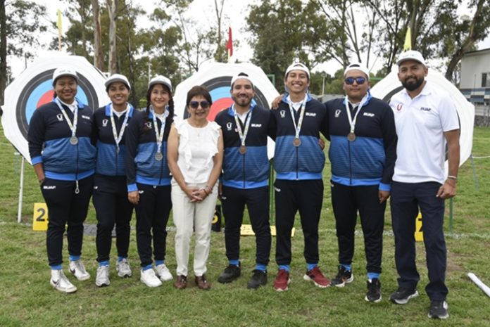La Rectora María Lilia Cedillo Ramírez asistió a la ceremonia de premiación de tiro con arco de la Universiada Nacional 2025, en la que la delegación de Lobos BUAP se posicionó en los primeros lugares del medallero: plata y bronce por equipos femenil y varonil, respectivamente.