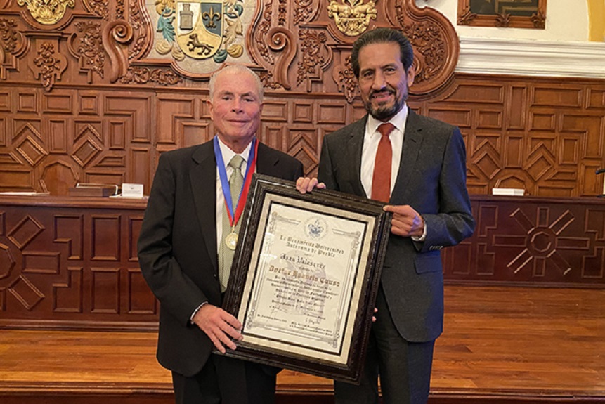El abogado, quien recibió el Doctorado Honoris Causa por su inquebrantable voluntad de hacer valer la ley, y por su defensa de la persona y de los derechos colectivos, manifestó visiblemente emocionado su beneplácito por el galardón, entregado por «una de las mejores universidades de México, con gran prestigio internacional».