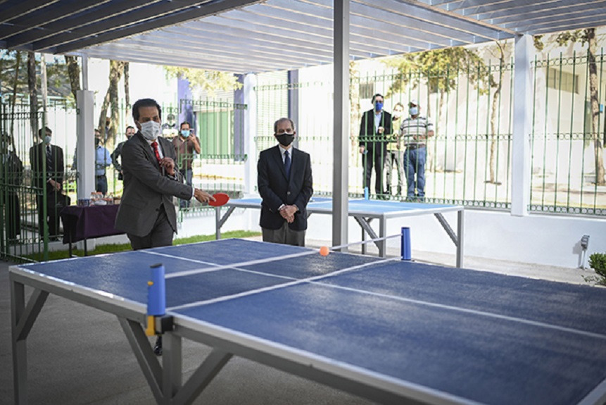 De esta manera, el Rector señaló que la comunidad de Físico Matemáticas dispondrá de espacios adecuados para la práctica deportiva, así como para eventos culturales, artísticos y de esparcimiento. En tanto, la nueva área de convivencia dispone de seis mesas de trabajo y dos de ping pong, bancas y áreas verdes. Igualmente, techado e iluminación.