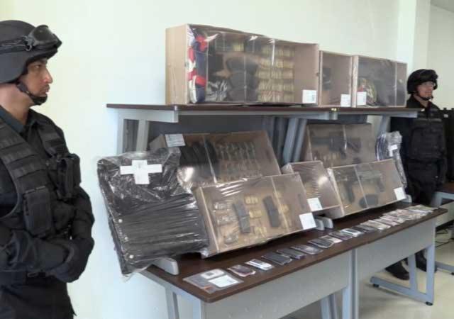 A los detenidos se les aseguraron: cuatro armas de fuego de grueso calibre, 481 cartuchos de diversos calibres, 12 equipos telefónicos, 244 mil pesos en efectivo, dos chalecos balísticos, esposas y un código de luces led con conexión para vehículos.