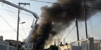 Se registra fuerte incendio en fábrica de plásticos en Puebla